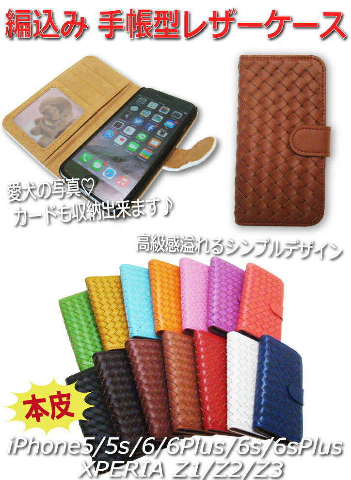 iPhone6 / 6Plus iPhone6s / 6sPlus XPERIA Z1 / Z4 全14色 編込み 手帳型レザーケース ★