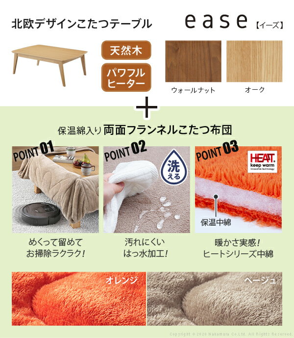 【送料無料】 こたつ 北欧 長方形 北欧デザインこたつテーブル〔イーズ〕90x60cm +保温綿入り両面フランネルこたつ布団 2点セット セット こたつ布団 あったか テーブル おしゃれ ソファテーブル リビング ロー 天然木 ウォールナット オーク テレワーク リモートワーク