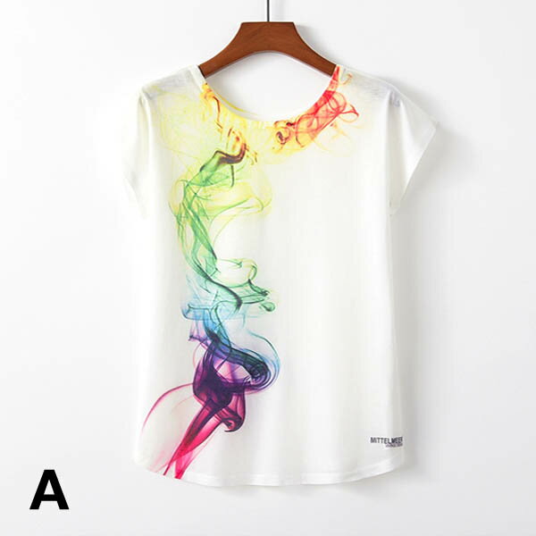 送料無料 にじみ 水彩画タッチ Tシャツ カラフル ロゴメッセージ 煙 虹色 タイダイ グラデーション メルヘン ヨガウェア スポーツ トレーニング ジム用 (全6柄/Lサイズのみ)