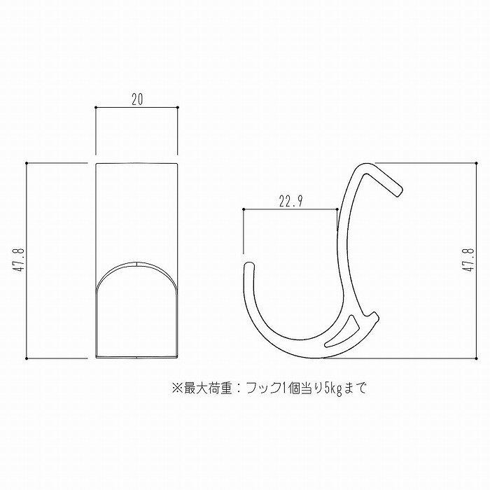 フック1個あたり5kgまででご使用頂けます。