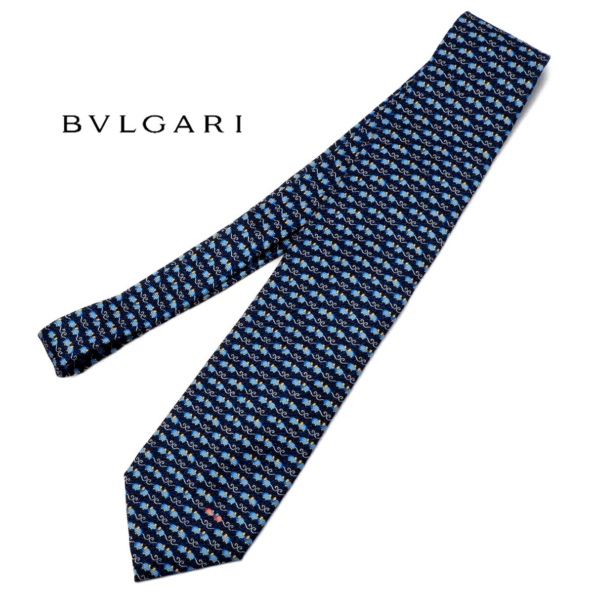 【中古】【非常に良い】 BVLGARI ブルガリ ネクタイ セブンフォールドネクタイ マウスモチーフ 総柄 動物柄 スーツ フォーマル シルク 紺色 メンズ ブランドネクタイ